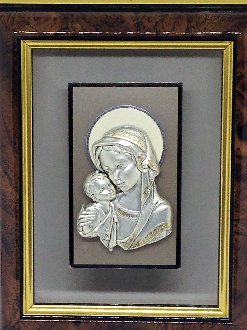Vintage Madonna Baby Jesus Wall Art Mary Jesus Wall Decor Artistic Creation On Silvered Metal Hand Made Madonna Art Virgin Mary Shrine