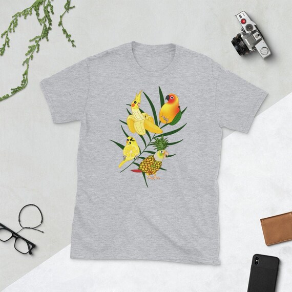 Aesthetic Birb Fruit Doodles Unisex T Shirt Birb Memes Clothes Parrot Lover Apparel Mango Banana Cockatiel Sun Conure Budgie Pineapple